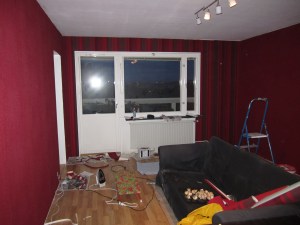 Efer att ha varit på bröllop hela dagen (och natten) igår var både jag och Patrik lite sega idag, men vi har iaf lyckats att tapetsera klart kortsidan mot fönstret idag! Nu är det bara en kortsida kvar 🙂