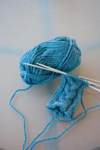 Det lite konstigt att sitta och sticka handledsvärmare när det är 25 grader ute och ännu varmare inne, men varför inte?!