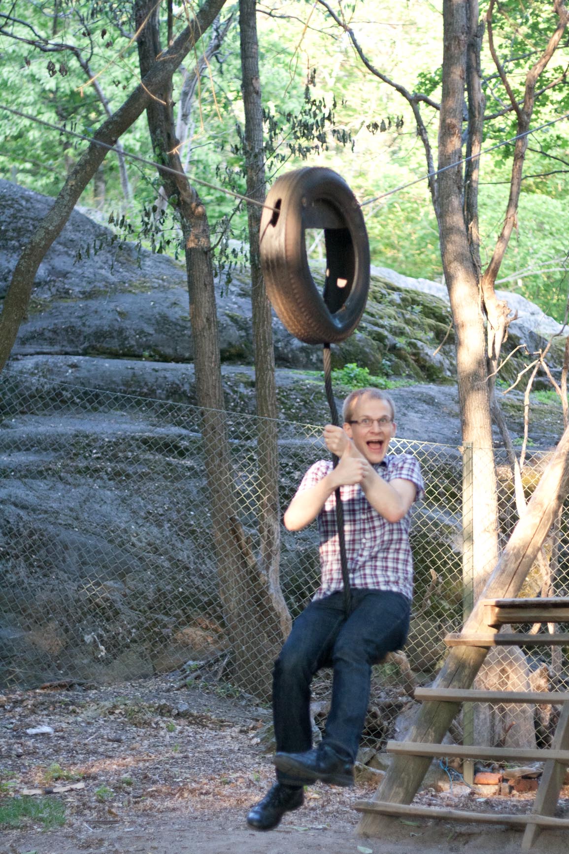På vägen hem gick vi en liten omväg runt Huvudsta Gård och hittade en linbana som vi aldrig har sett förut. Och en linbana kan man inte bara gå förbi, man måste åka några gånger i den först…