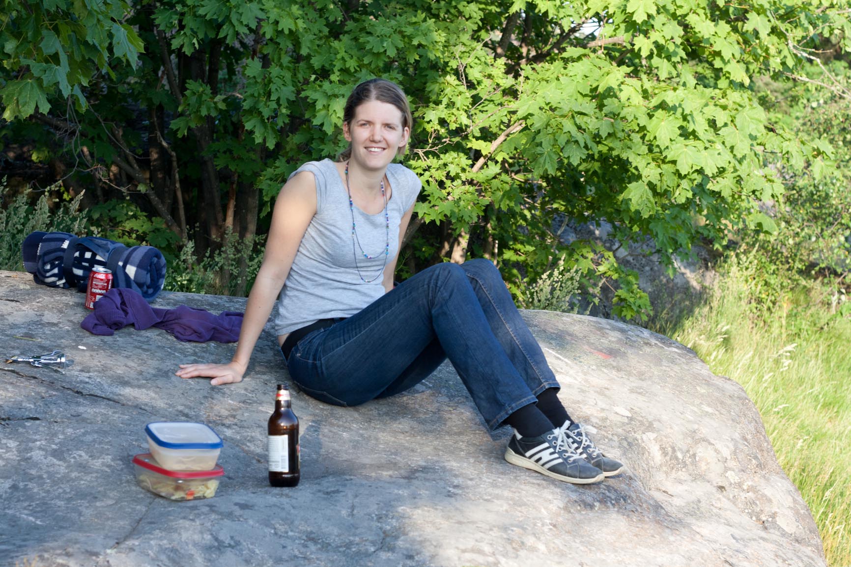 Idag hade jag tänkt och träna efter jobbet men kom istället på bättre tankar. När det är så här mycket sommar gäller det att utnyttja det och vara ute. Så jag och Patrik slängde ihop lite pastasallad och gick sen ut och satte oss på klipporna på 5 min gångavstånd från oss, trots att vi satt lite i skugga var det helt underbart lagom varmt 🙂