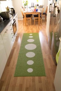 Idag gick vi hela vägen in till stan och köpte en massa bra att ha saker till resan, skor till Patrik, vandringsbyxor till mig, hörlurar, vattendesinfektionstabletter, kamerabatteri och extra minneskort till kameran 🙂 Förra helgen fixade jag en julklappsmatta till vårt kök, jag tycker den passar utmärkt!