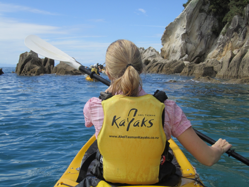 Idag har vi paddlat i nationalparken Abel Tasman och sett sälar på ön Tonga och även en pingivn 🙂 Innan lunch paddlade vi och efter lunch gick vi med samma guide som hade paddlingen längs en vandringsled 7 km längs kusten och fick veta en massa spännande saker om alla växter i regnskogen. Den guide vi hade levde förresten upp till alla våra fördomar om vildmarksguider i Nya Zeeland/Australien – han var sjukt solbränd med blekt hår, gick barfota alla 7 km genom skogen(med egentäljd vandringsstav), åt upp skalet från en cikada (ej levande), hoppade ner i en bäck och tog ett dopp samt tog fram en liten ihopfällbar såg och sågade ner ett träd (ca 5 m högt) som tydligen skulle tas ner (det var ej inhemskt, dvs klassades som ogräs…).