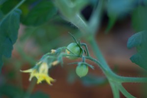 På en annan tomatplanta vi hittat de första tomaterna!
