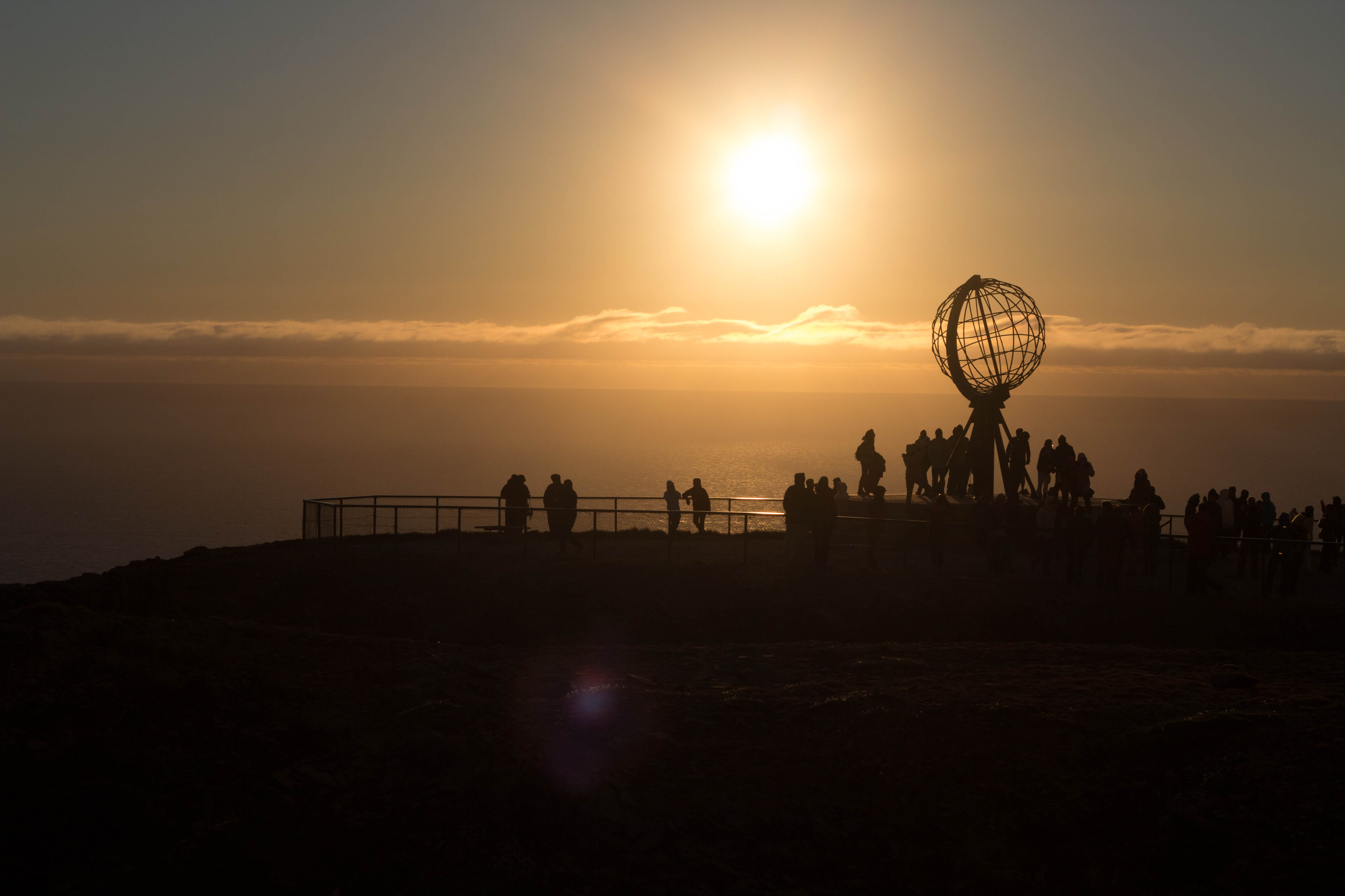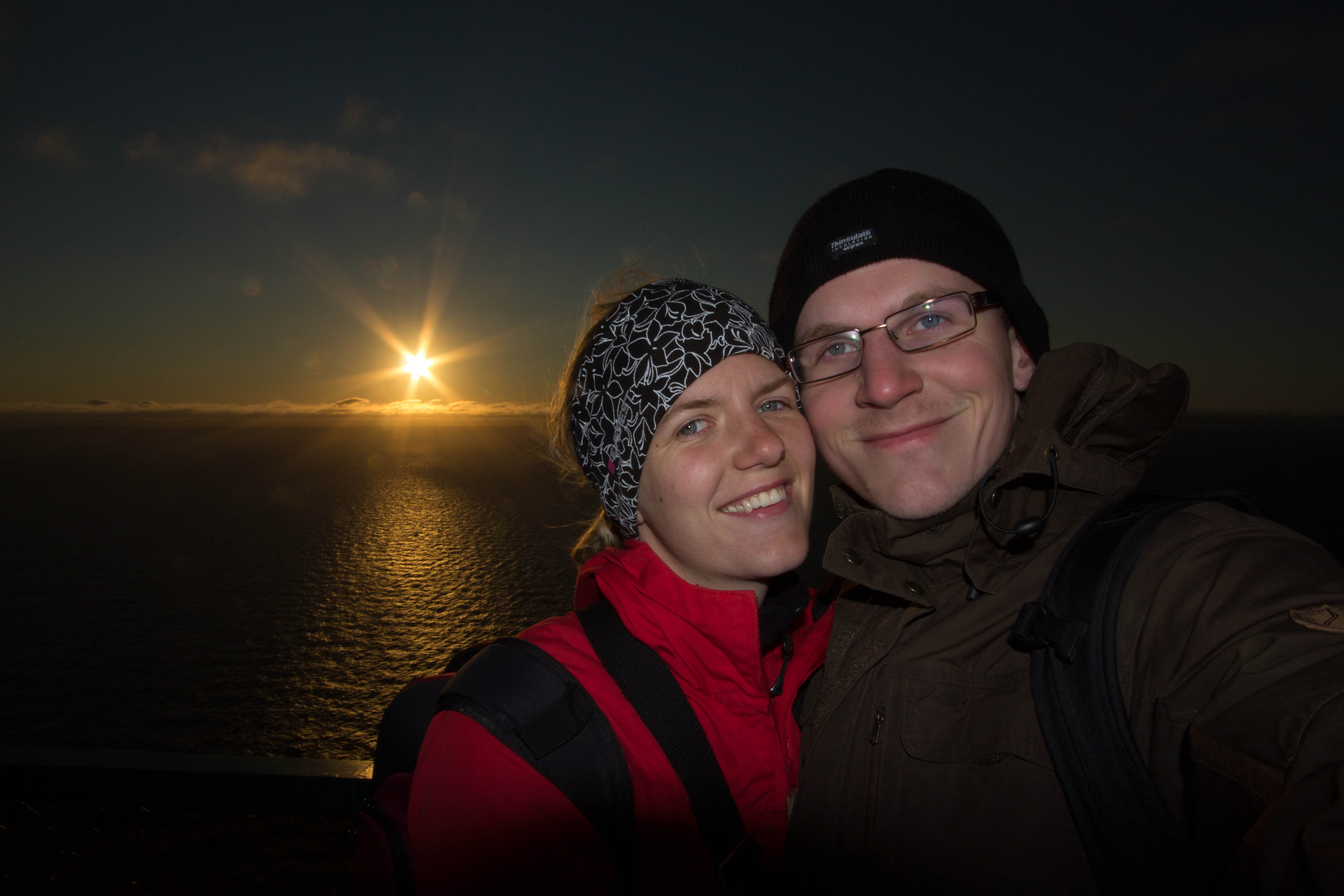 Färden fortsatte norrut mot Hönningsvåg där vi bodde på vandrarhem. Vid halv elva på kvällen åkte vi de sista tre milen ut till själva Nordkapsklippan. Vi hade inte så höga förväntningar utan tycket mest att vi skulle åka dit för sakens skull trots alla busslaster med människor som också var där. Men det var mycket över våra förväntningar, riktigt häftigt att se solen mitt i natten lysa och vara högt över horisonten. Trots att det var mycket folk fanns det plats för alla kändes det som.