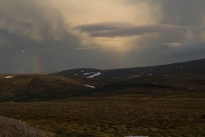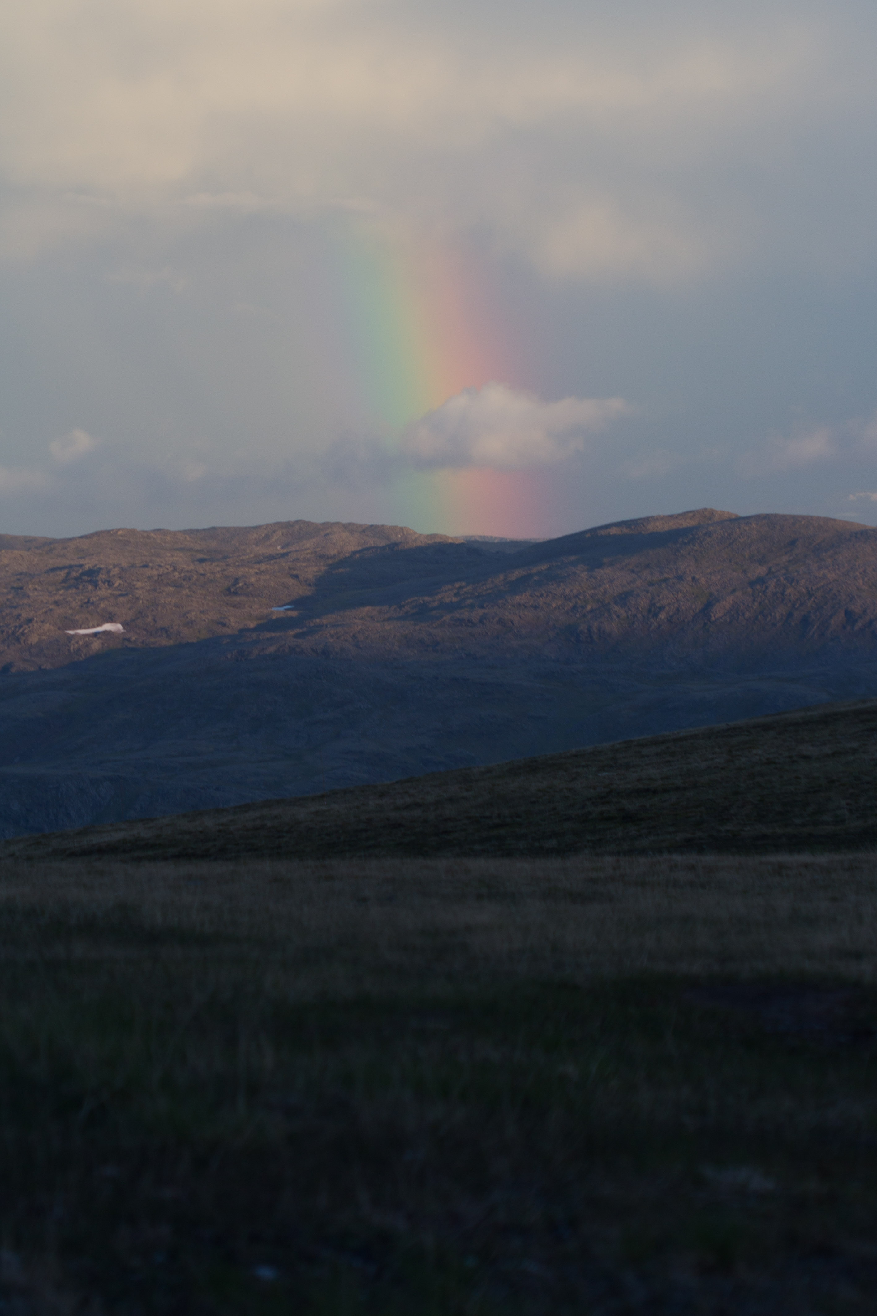 På väg tillbaka för att sova (i strålande solsken kl 1 på natten) fångade vi en dubbelregnbåge på bild. Inte ofta man lyckas se en dubbelregnbåge (dock väldigt svag sådan) och särskilt inte kl 01 på natten.