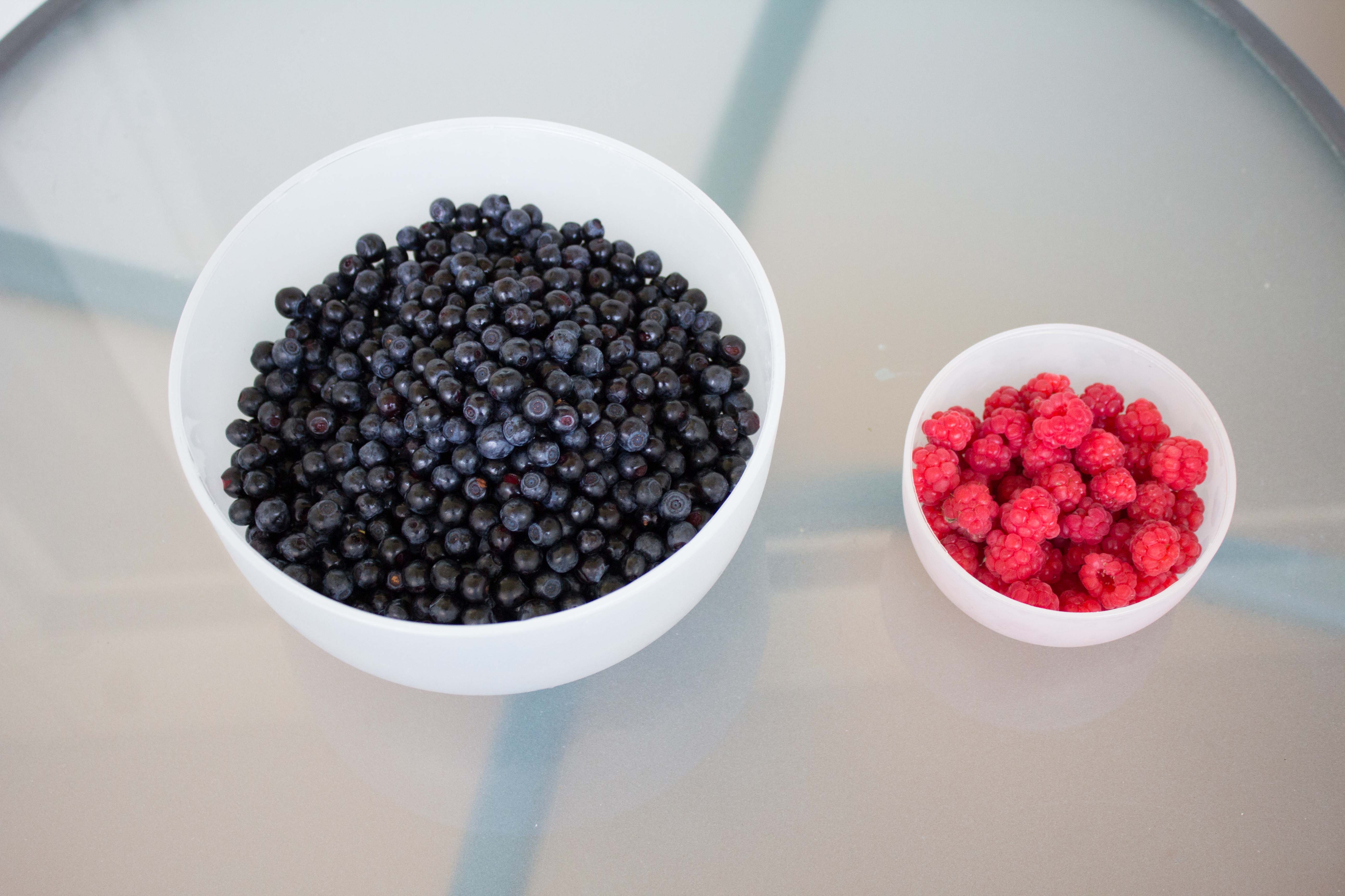 Jag plockade med mig en del hallon hem, men hallon är som godast när man går barfota på gräsmattan och äter dem direkt från buskarna…