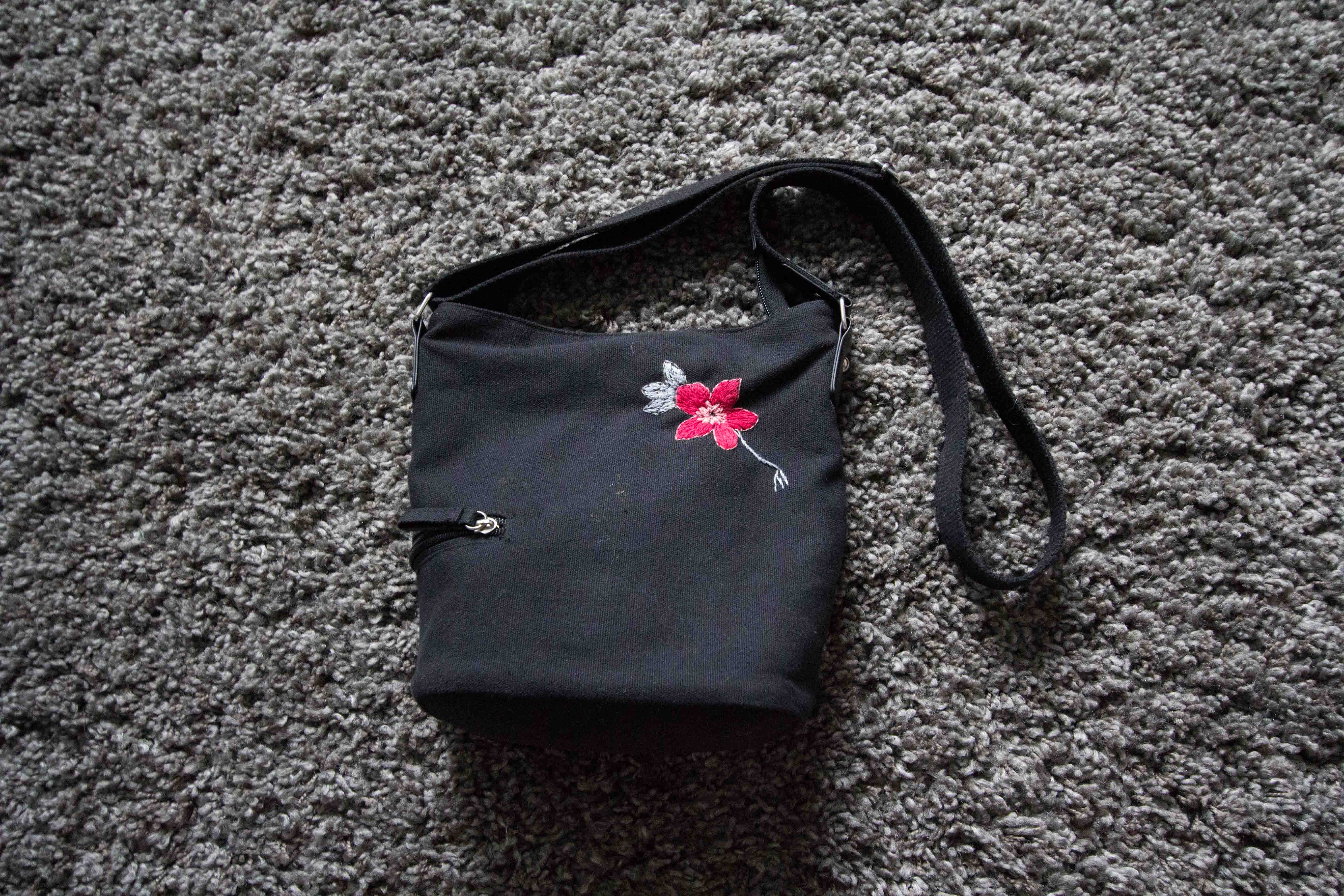 Tidigare under sommaren gjorde jag min svarta väska jag köpt lite roligare genom att brodera dit en blomma, jag har knappt broderat nånting sen jag hade slöjd i skolan tror jag, men det gick ganska bra ändå.