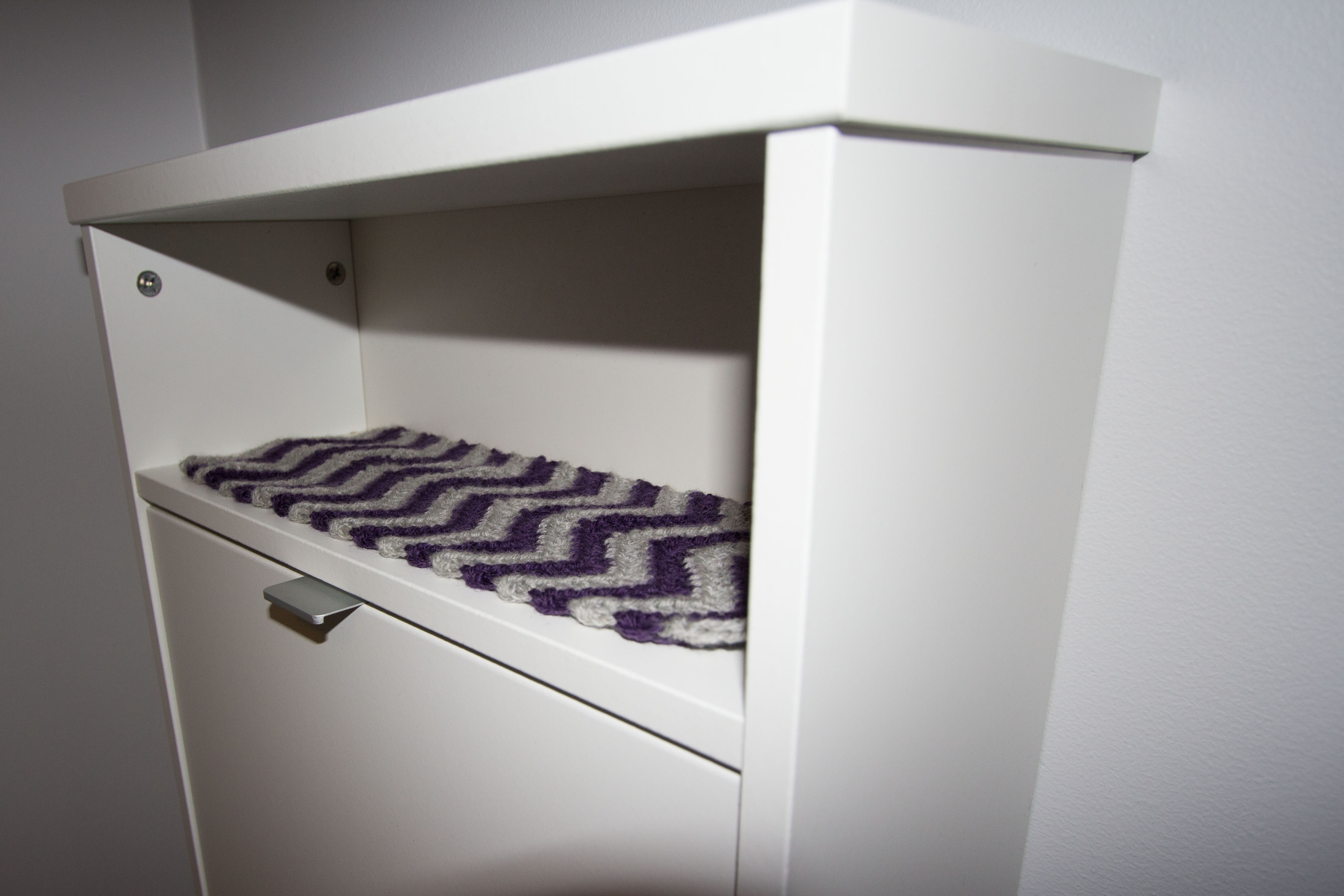 Jag har också provat att virka zick-zack mönster till en duk till byrån i hallen. Det var väldigt enkelt och roligt och jag funderar på om jag ska ge mig på att virka en filt i samma mönster.