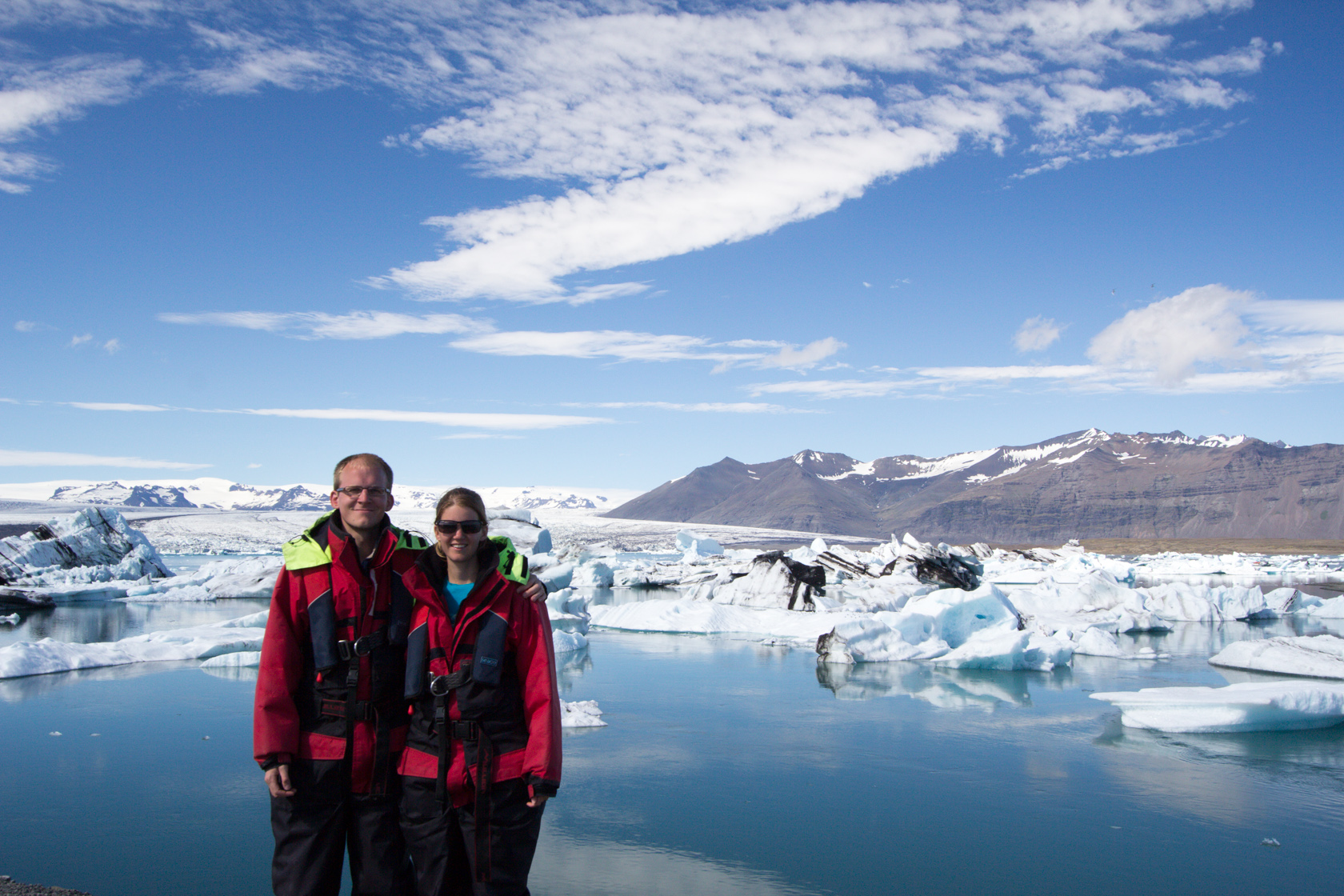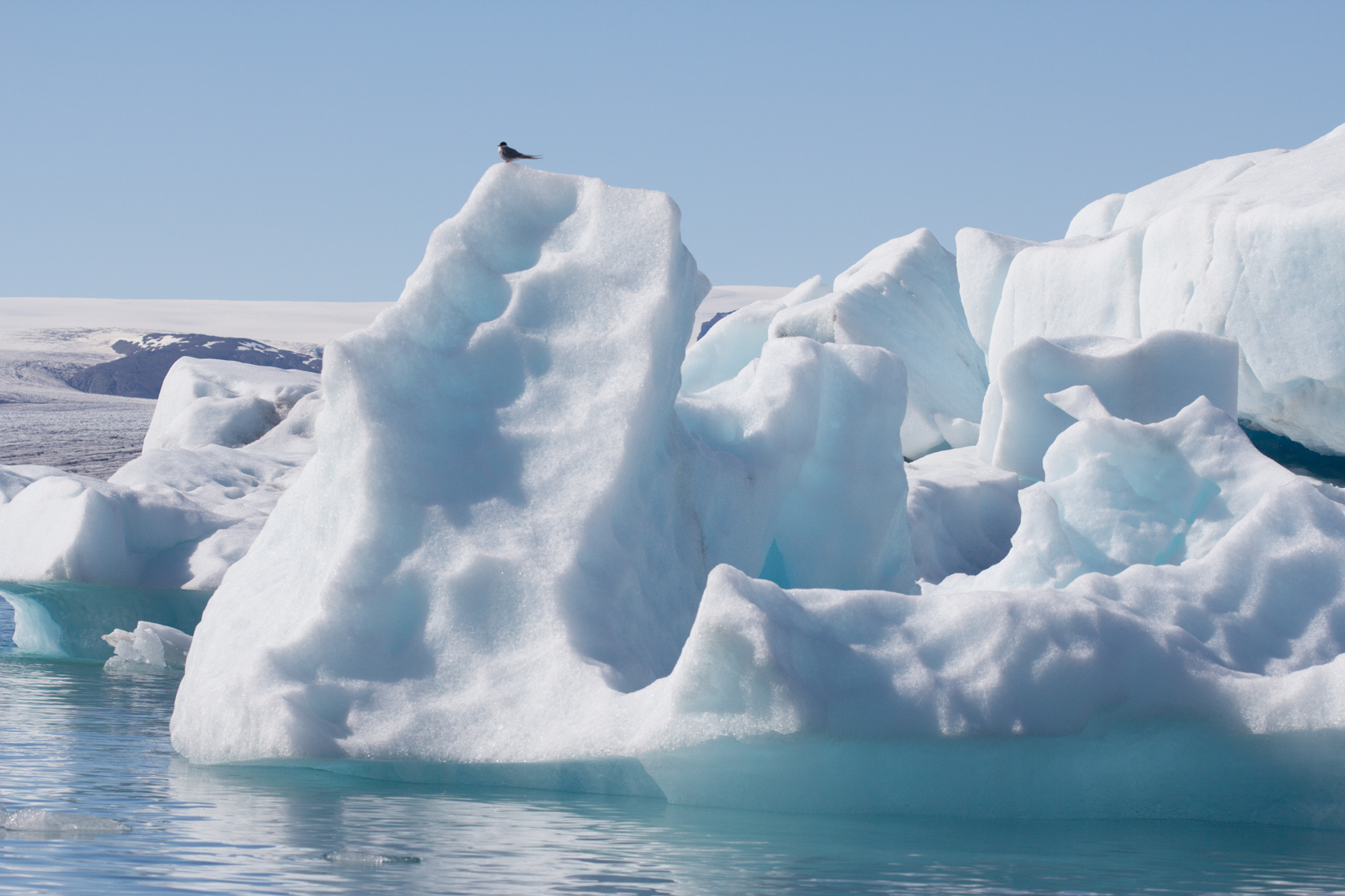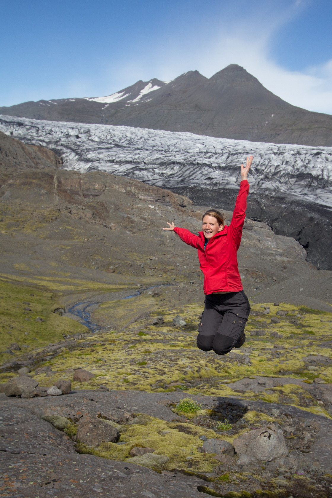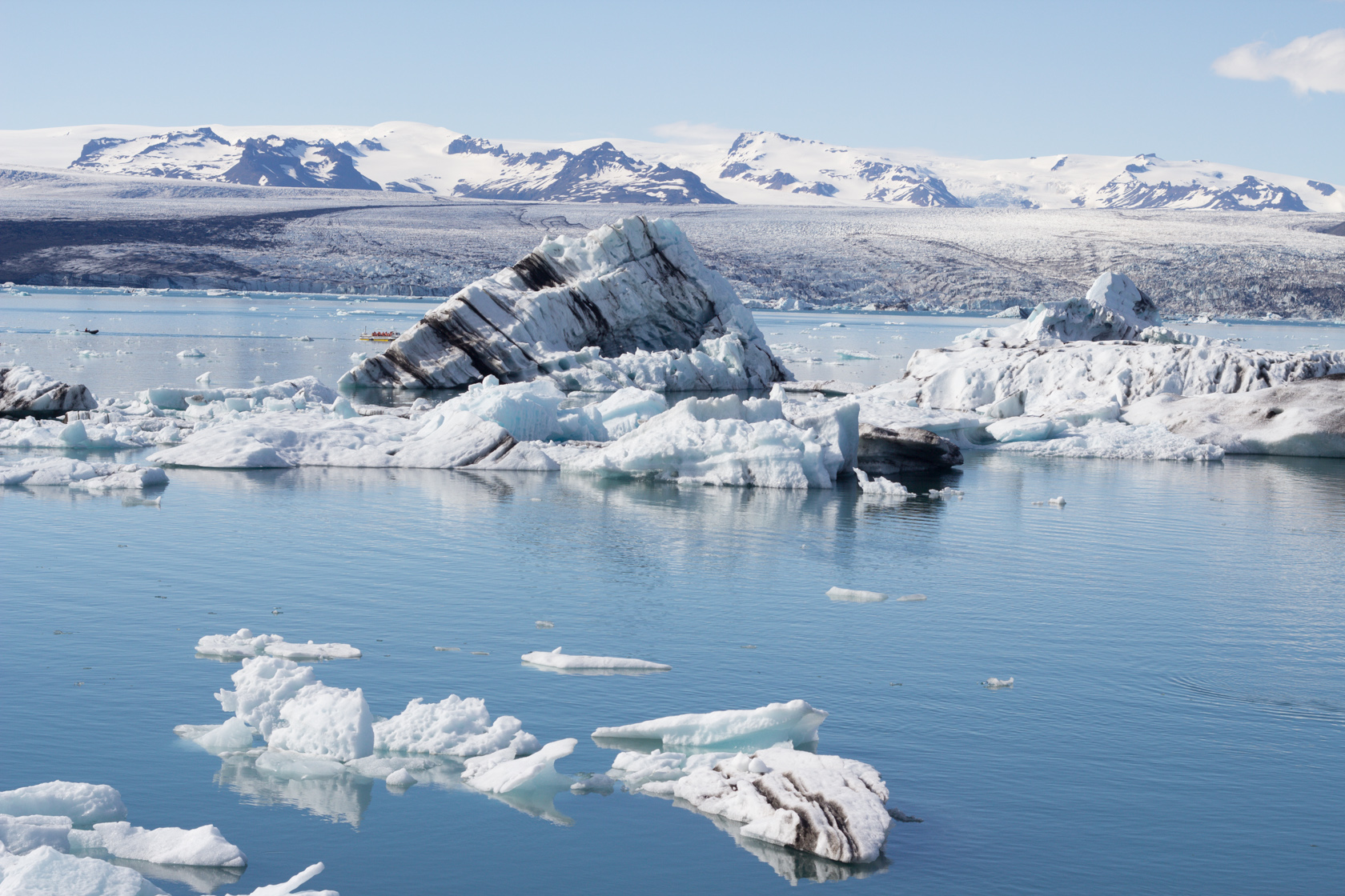 Under nästa dag tog vi på förmiddagen en vandring upp till Vatnajökull för att sen åka iväg till glaciärsjön ”Jökulsarlon” där vi åkte på en båttur på sjön bland en massa stora isberg som hade brutit sig loss från glaciärkanten och var på väg ut i havet. Återigen hade vi tur med vädergudarna som gav oss strålande sol hela dagen (trots att meteorologerna sa att det skulle regna).