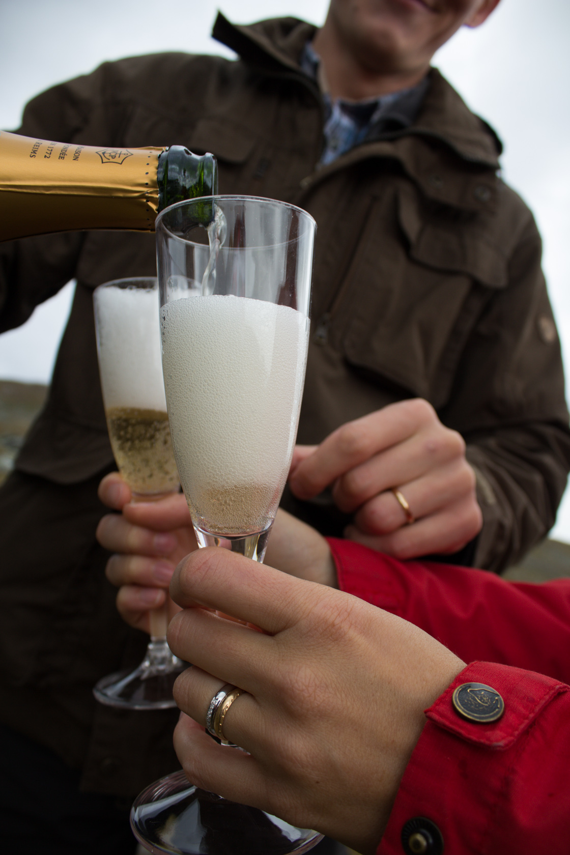 Vi skålade i champagne (som jag t.o.m tyckte var god!), ringde och chockade familjemedlemmar, och avslutade med god trerättersmiddag på fjällstationen.