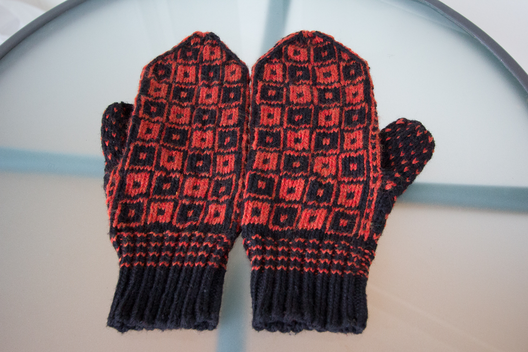 Så blev då äntligen vantarna till Patrik klara! Jag är nöjd med att de blev klara innan vintern kom men inte helt nöjd med resultatet. Det största problemet är att vante nr 2 på något outgrundligt sätt har blivit betydligt större än vante 1, trots att jag är helt övertygad om att jag stickat med stickor nr 4 på båda vantarna. Jag har ju inte heller väntat typ ett år mellan vante 1 och vante 2 utan stickade dem direkt efter varandra – så att de blev olika stora förblir ett mysterium.