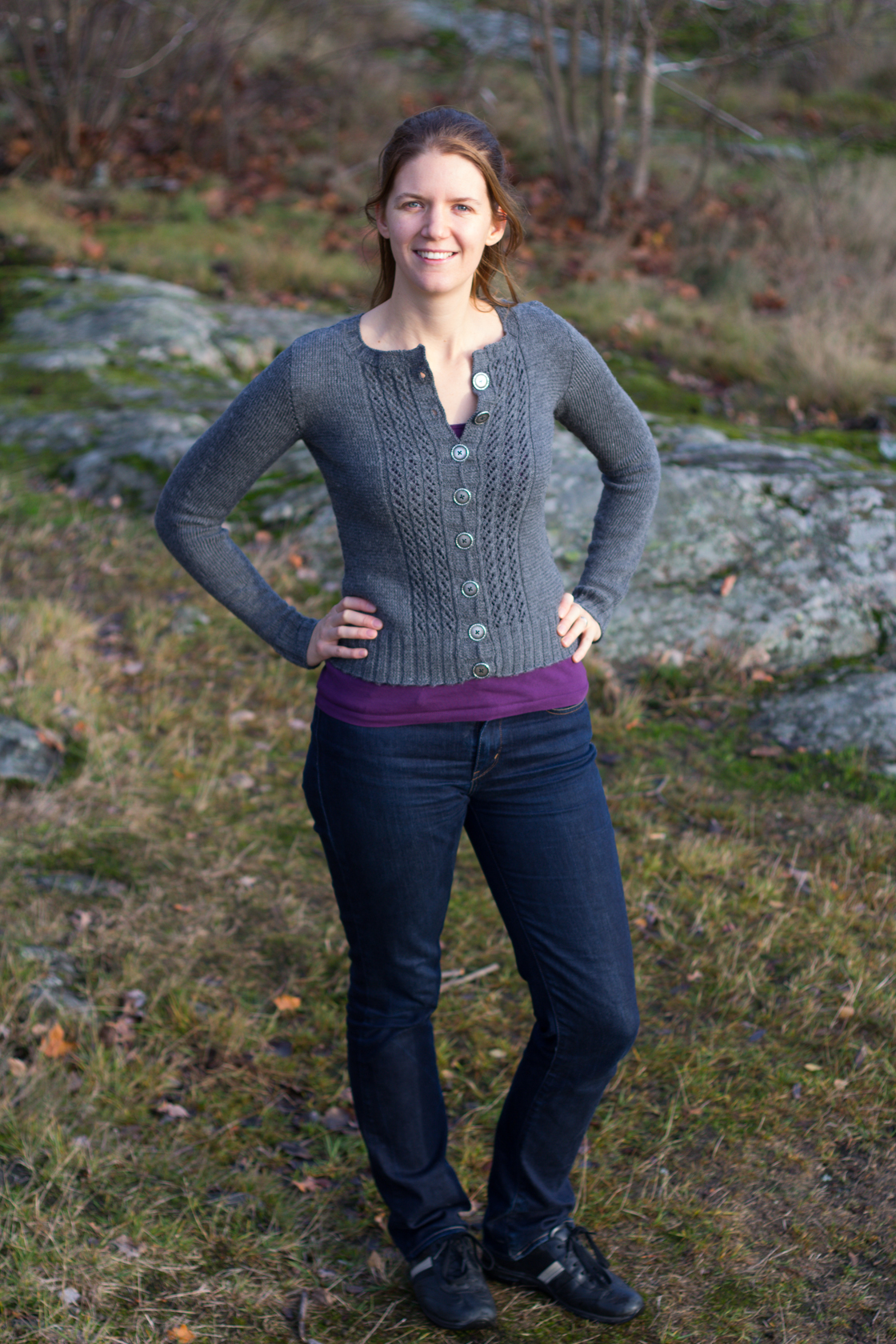 Så blev äntligen min första egenstickade kofta klar! Jag tycker att jag, sett till mina tidigare tröj-projekt, har fått koftan färdig relativt snabbt. Jag påbörjade den i somras på väg upp till Kebnekaise och den blev ju klar innan jul 🙂
