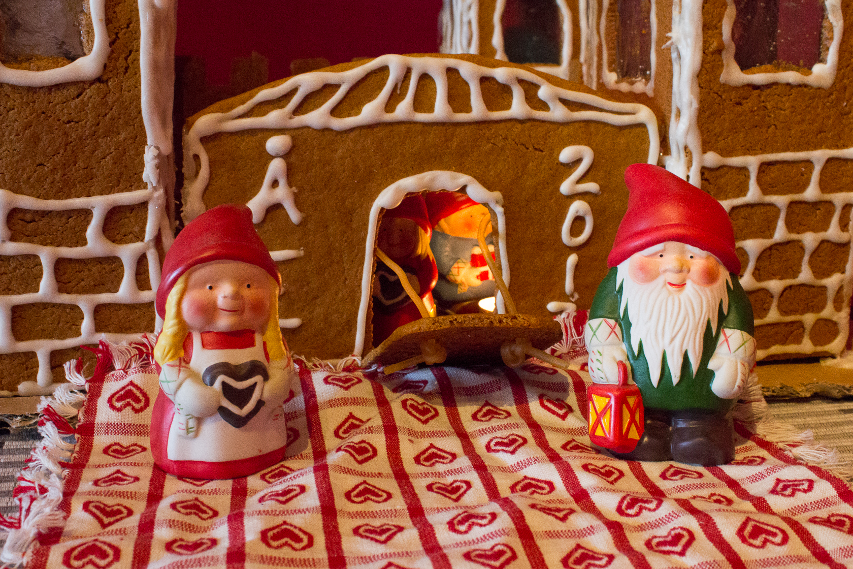 Igår var det återigen dags för den årliga traditionen med pepperkakshusbakande. Ellen kom vid halv elva och vi jobbade hårt ända fram till halv sex, det är betydligt fler delar i en borg än man kan tro… Resultatet blev dock, för att vara oss, ganska så bra. Idag har även tomtefamiljen flyttat in i borgen 🙂
