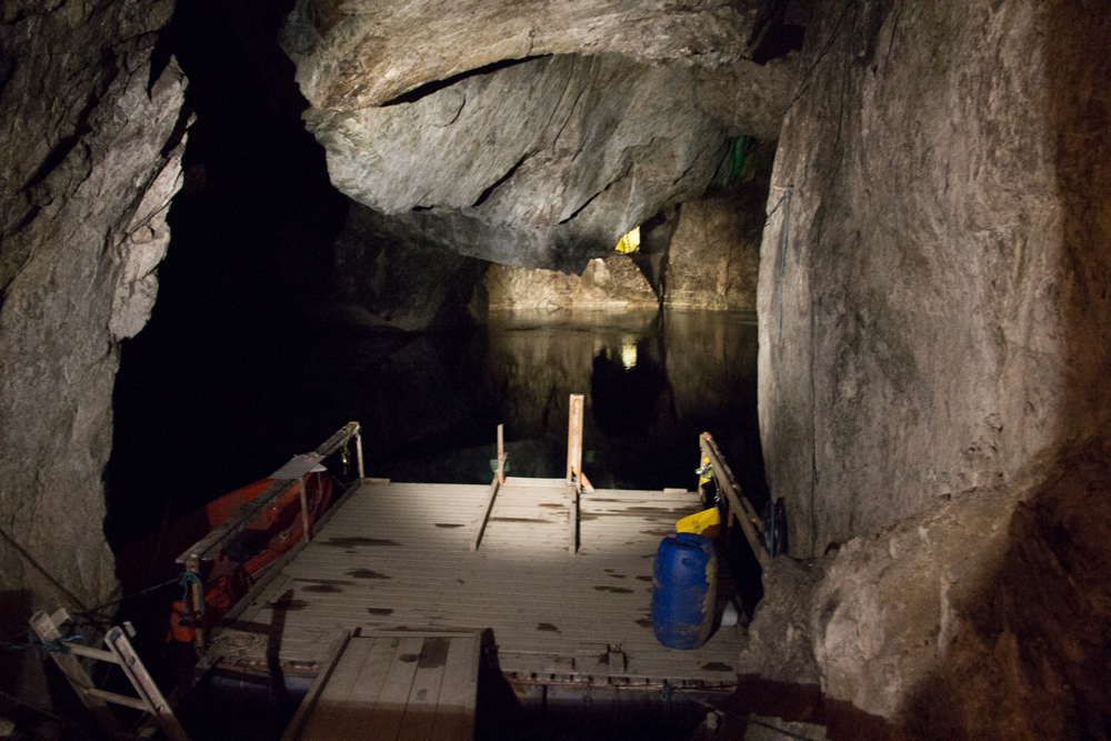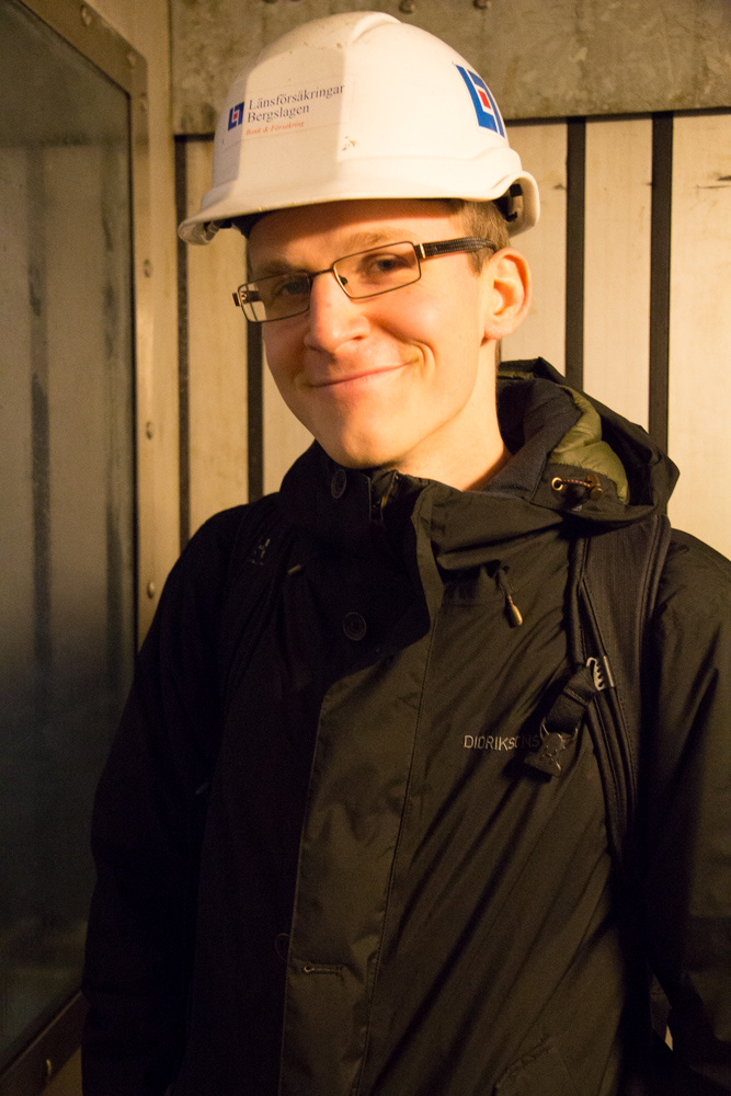 Efter att ha ätit middag på Måns Ols värdshus mötte vi upp vår guide vid vandrarhemmet kl 20.00 och tog sen hissen ner till gruvans 155 meters-nivå. Hissen tog drygt 4 min. Väl nere så lämnade vi av våra saker i ”Gästabudssalen” där vi sen skulle sova. Sedan gick vi runt i gruvan, ca 1 km, och fick se en massa salar och trånga gångar. Det häftigaset var nog eko-salen där det som namnet avslöjar ekade väldigt väldigt mycket, guiden började sjunga och det lät som en hel kör.