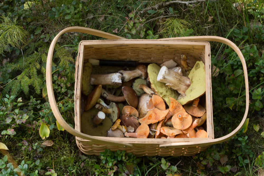 Dagens tur i svampskogen resulterade i en hel del soppar (Stensopp och Brunsopp), fina små blodriskor och några kantareller och taggsvampar.