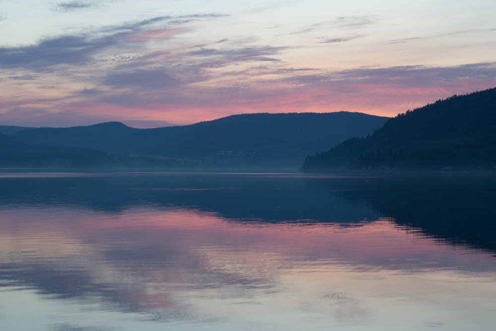 Så här års är det ljust nästan dygnet runt, vi gick ut strax efter 23 och fick några fina bilder med hav, berg och en rosa-lila himmel