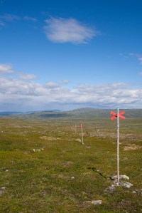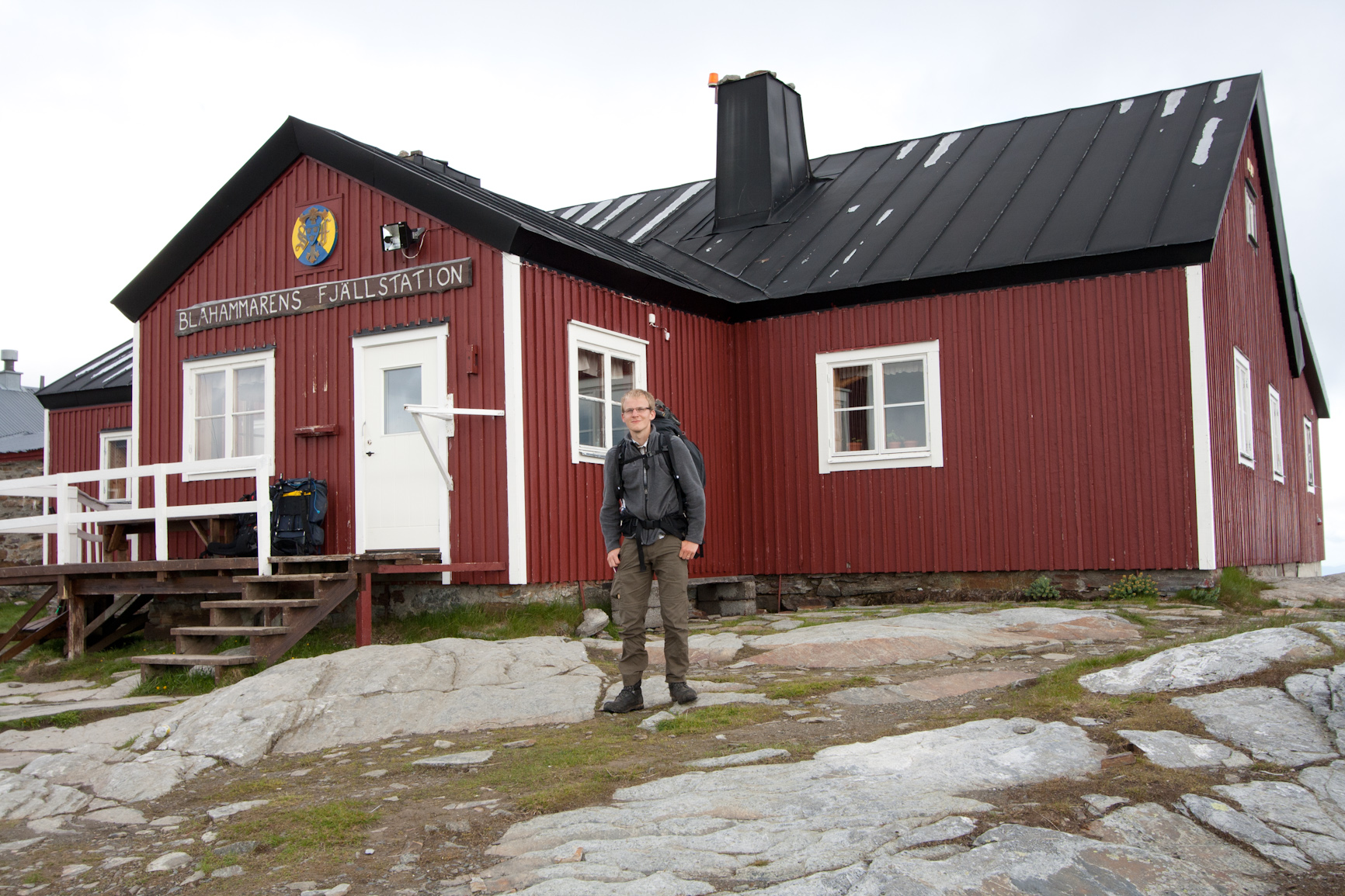 Väckarklockan ringde kl 06.30 vi kom upp strax innan 07.00. Frukost tillagas i den kalla morgonen (blåsigt, dock ej lika som första tältningsmorgonen). Tiden går och strax efter 9 påbörjar vi vår ca 16 km vandring mot Blåhammaren. Först en tung uppförsbacke med skavande fötter sedan en paus med varmakoppen och choklad. Vi travar vidare i optimalt vandringsväder, växlande molnighet, svalt och lagom blåsigt. Vid halv ett når vi Enkälens vindskydd där vi äter lunch (egentorkad köttfärssås). Kvart över ett drar vi vidare (efter att ha plåstrat om mina fötter…) och nu är det platt / nedför över myrar och öppna vidder. Snart bär det av de sista 5-6 km i uppförbacke till Blåhammaren på 1086 möh. Krön efter krön avlöser varandra och det känns som om vi aldrig kommer fram. Med onda fötter och trötta ben kämpar vi vidare och de sista km går på vilja och envishet. Klockan halv fem är vi äntligen framme. Efter strul med bokningar får vi till sist plats i ett 14 bäddars rum (istället för 6-bäddar) och vi duschar snabbt innan 3-rätters middag intas i restaurangen kl 18.00. Vi äter gott och pratar med de som sitter vid vårat bord till ca 21.15. Strax innan 22 är det dags att sova innan sista dagens vandring tillbaka till Storulvån.