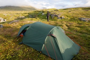 Vi lämnar ett underbart Stugan kl 07.40 och åker Docksta – Sundsvall, Sundsvall – Ånge (lunch på kinesen i Ånge) och sedan Ånge – Enafors för att där bli hämtade med buss till Storulvån. Efter en snabb titt på fjällstationen ger vi oss iväg för att hitta en tältplats. Efter en del uppförsbacke kommer vi upp och fjällvärlden öppnar sig, underbart! Fantastiska berg. Vi kommer fram till hängbron över Lillulvån och korsar denna rangliga bro för att sedan slå läger några hundra meter från bron vid en alldeles egen liten fjällbäck. Middag blir biffstroganoff tillagad kvällen innan. Efter mycket fotograferande kryper vi in i tältet när solen går ner kring 22-tiden. Det tar ett tag att somna, det är många ljud (främst vinden som fladdrar i tältduken). Efter en mycket blåsig ochlite kall natt stiger vi upp vid 7-tiden (Åsa) och 8-tiden (Patrik) för att äta frukost.