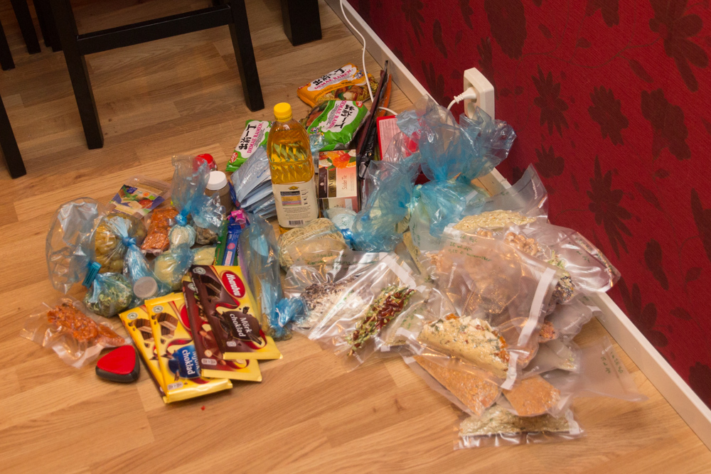 Hemresan (eller ja till Stugan i Höga kusten) bestod av båt-buss-tåg-ersättningsbuss-tåg-tåg-bil. Även hemresan blev 3 timmar försenad, denna gång pga blixtnedslag i ett ställverk vilket gjorde att vi fastnade i metropolen Murjek. Hon som hade en liten kiosk i stationshuset sålde dock Norrlands guld och chips som aldrig förr… 🙂