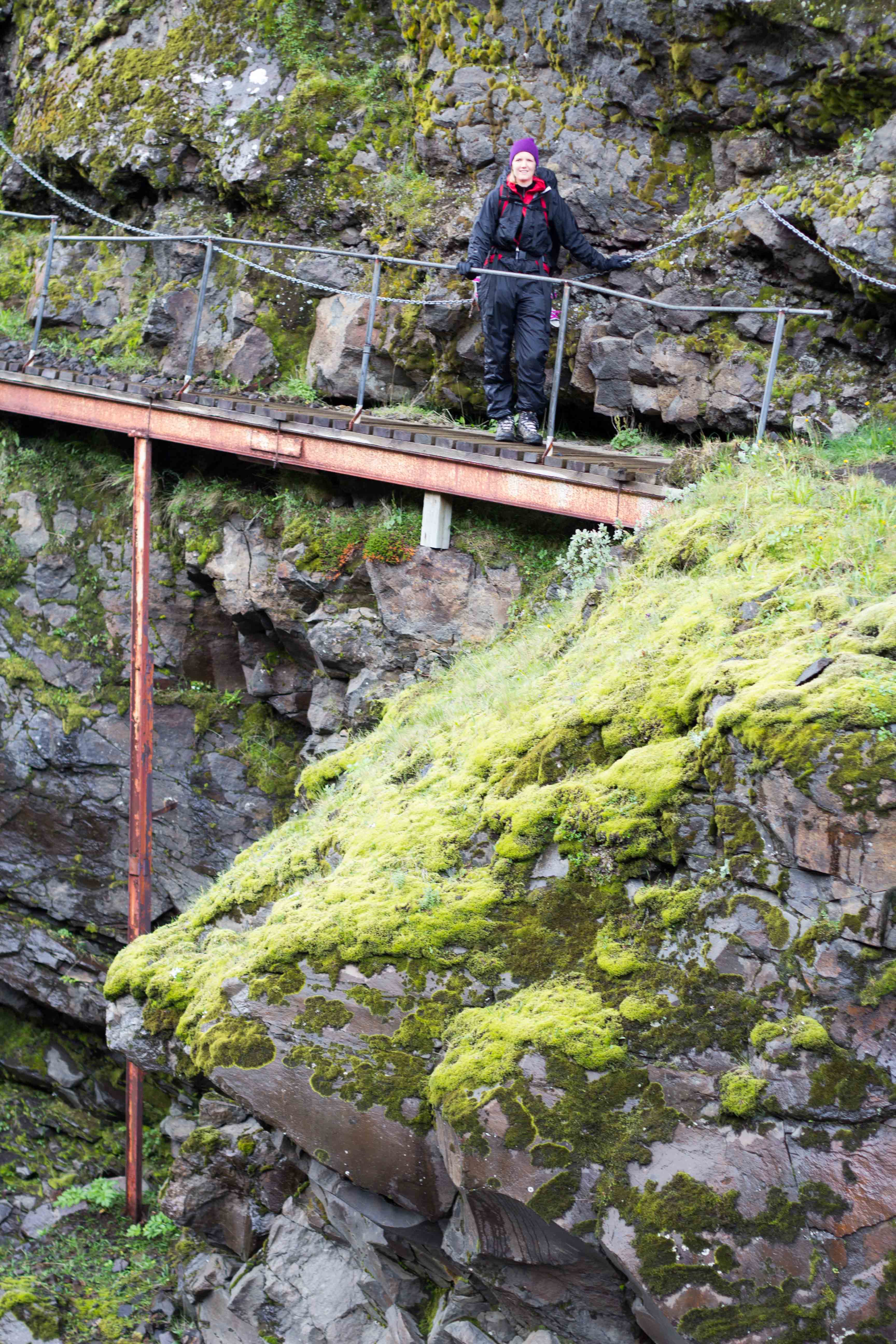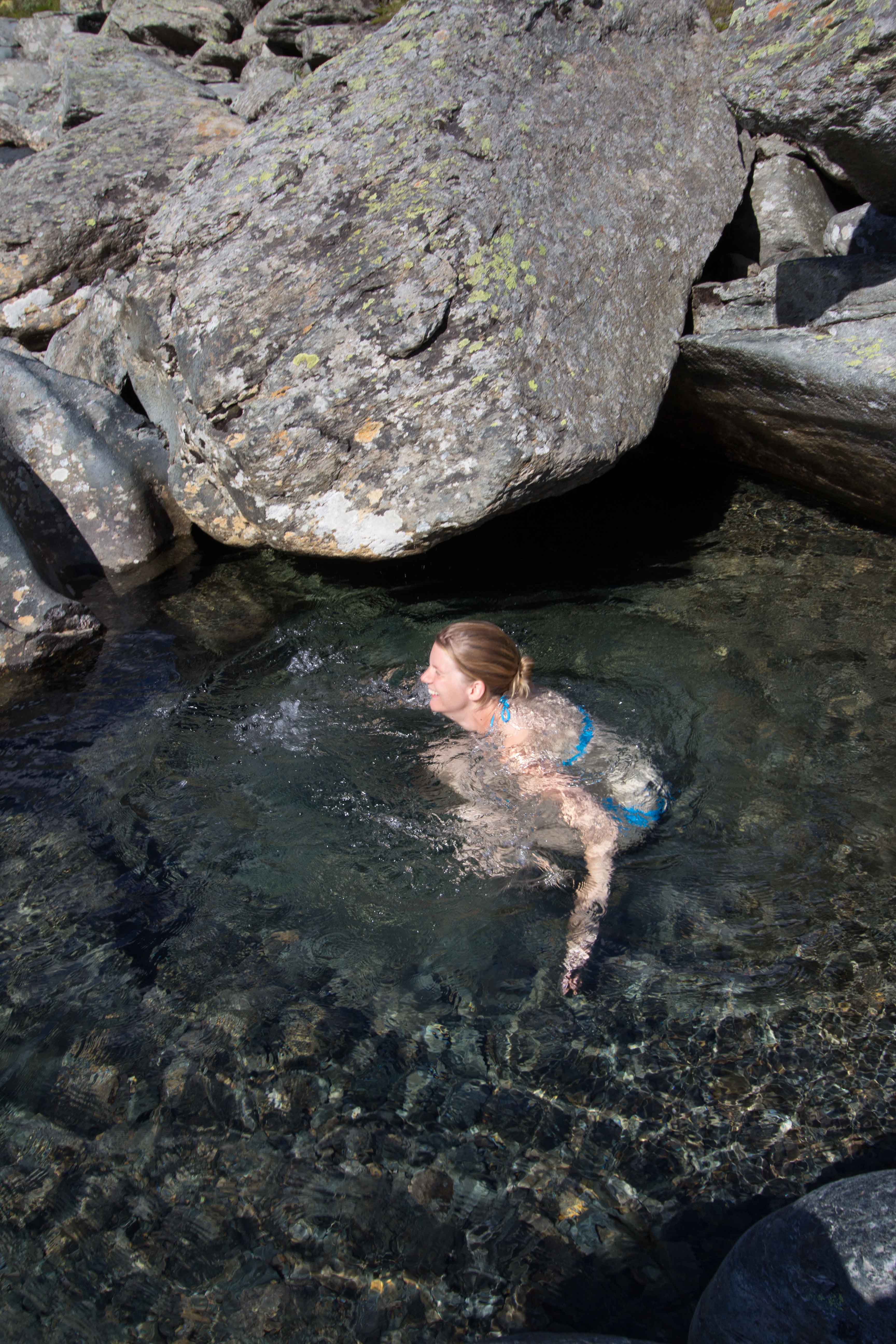 Dagen efter toppbestigningen tog vi en kortare vandring (bara 7 km…) fram och tillbaka till ”Jättegrytorna” – häftiga stenformationer vid älven. På vägen dit hittade vi ett eget litet vattenfall som vi stannade och badade fötterna i. Väl framme vid älven åt vi lunch och jag bytte om till bikini och satt och solade vid den forsande älven! Jag tog dessutom ett dopp i det kalla klara glaciärsmältvattnet…