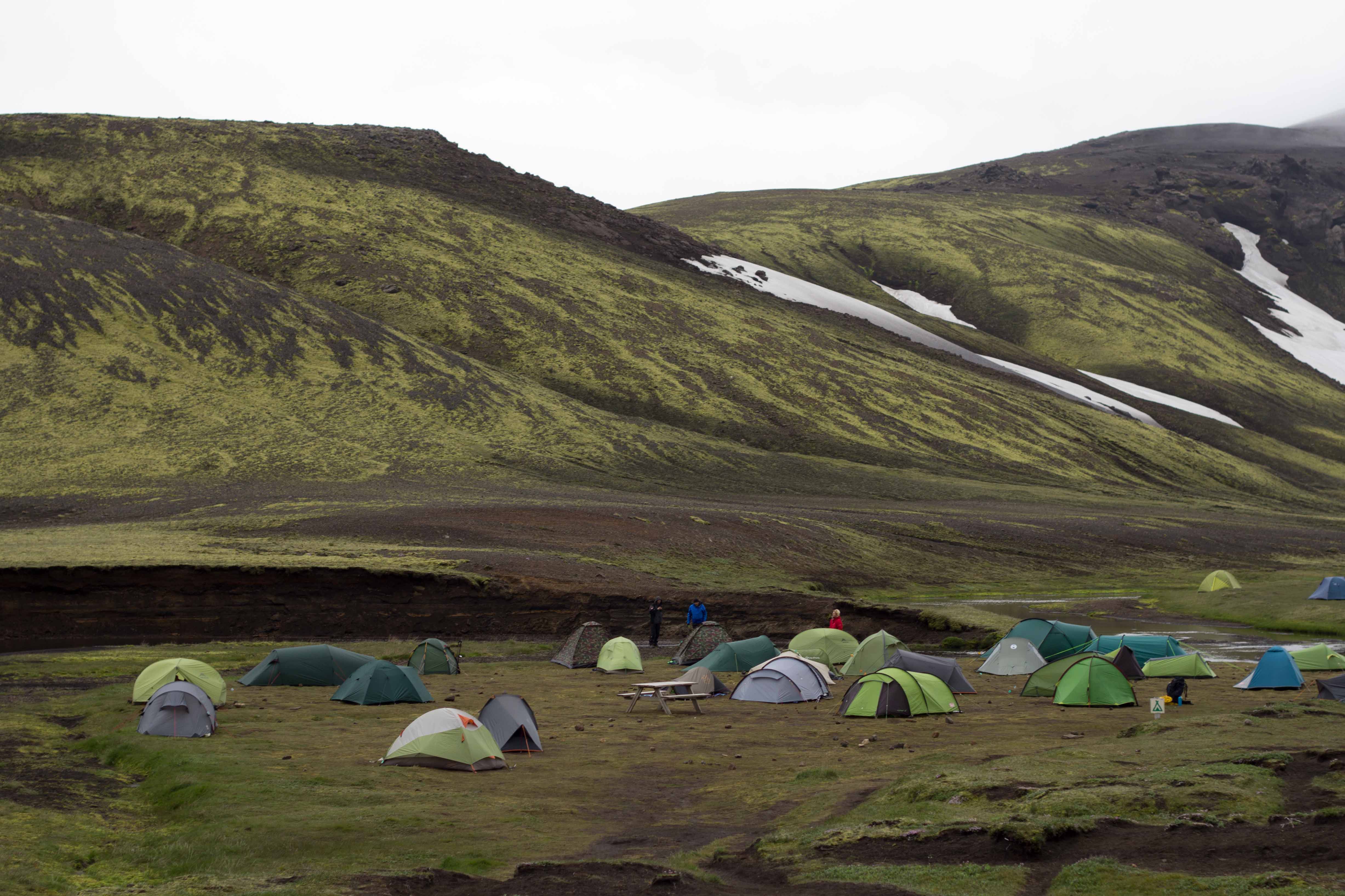Sen handlade vi upp oss på mat inför vandringen Landmannalaugar – Þorsmörk som var själva huvudmålet med Islandsresan. Vandringen började i strålande solsken i Landmannalaugar och första dagen var det 12 km vandring och en höjdskillnad på knappt 500 m (uppför) till Hrafnitinnusker vilket gjorde att vid första stugan/tältplatsen var det fullt med snö!