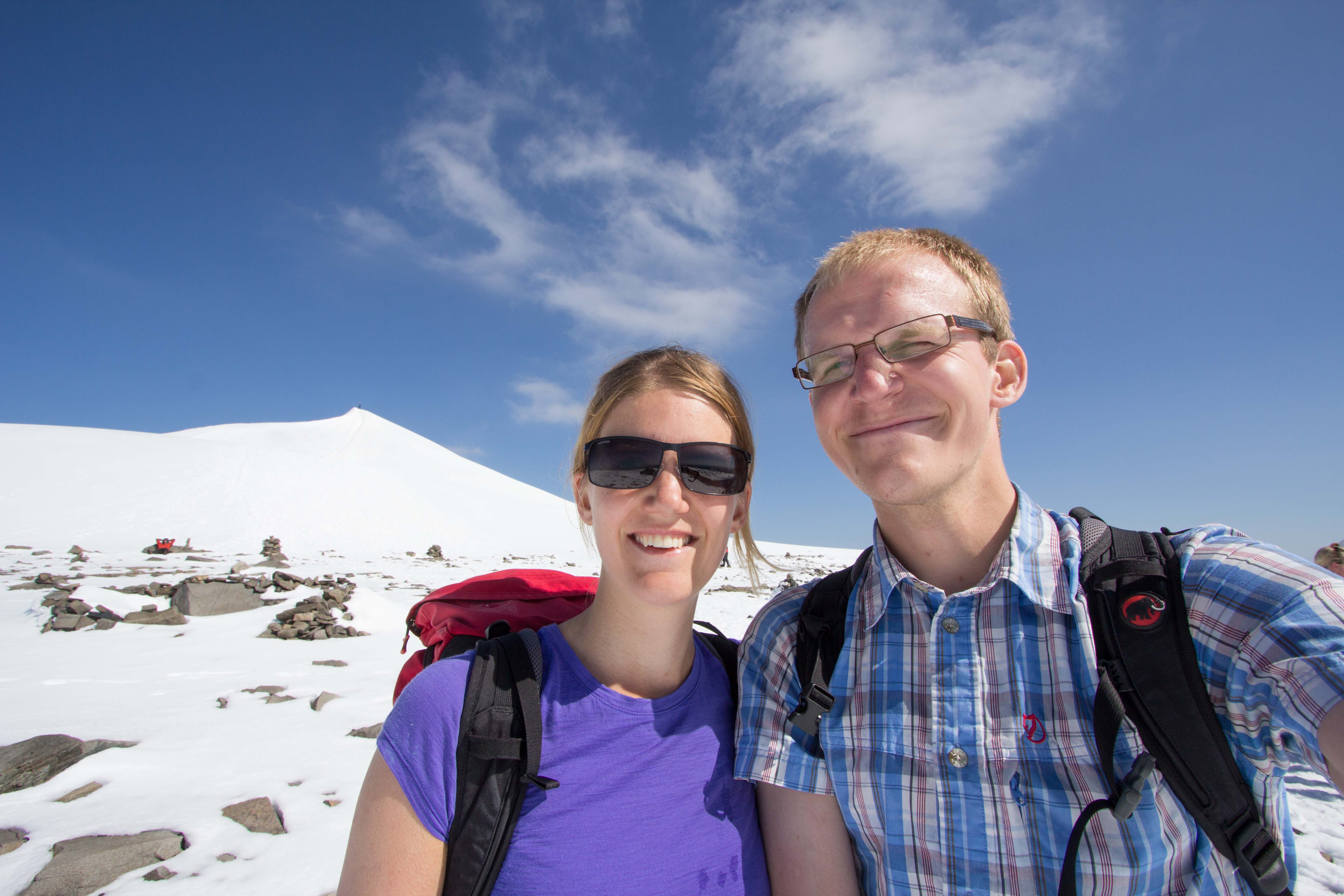 Vi hade bokat in oss på en guidad topptur upp på Kebnekaise den första av de tre dagarna vi bodde på fjällstationen, vi gav oss iväg redan kl 07.15 i strålande väder. Tempot var till en början ganska högt (om vi hade gått själva hade vi gått långsammare men det var inget omöjligt tempo att hålla), det gick dock långsammare när det började bli brantare. Det finns 2 vägar upp på Kebnekaises sydtopp, den östra och den västra. Vi gick den östra eftersom vi gick den guidade turen och den innehåller dels vandring över en glaciär och sedan klättring (Via ferrata, där man hakar fast sig själv i en stålvajer som går längs hela berget). Den östra leden är kortare än den västra som man kan gå på egen hand. Vi kom upp bland de första guidade grupperna vilket var bra eftersom det får plats typ 4 personer på toppen och det blev kö ett tag efter att vi varit uppe. Det var väldigt maffigt att gå upp och få se den fantastiska utsikten över fjällvärlden, efter att vi varit upp åt vi vår medhavda lunch precis nedanför toppen. Det var vindstilla och soligt så man kunde sitta i T-shirt och bara njuta av utsikten – det är nog inte många dagar per år som man kan göra så 🙂