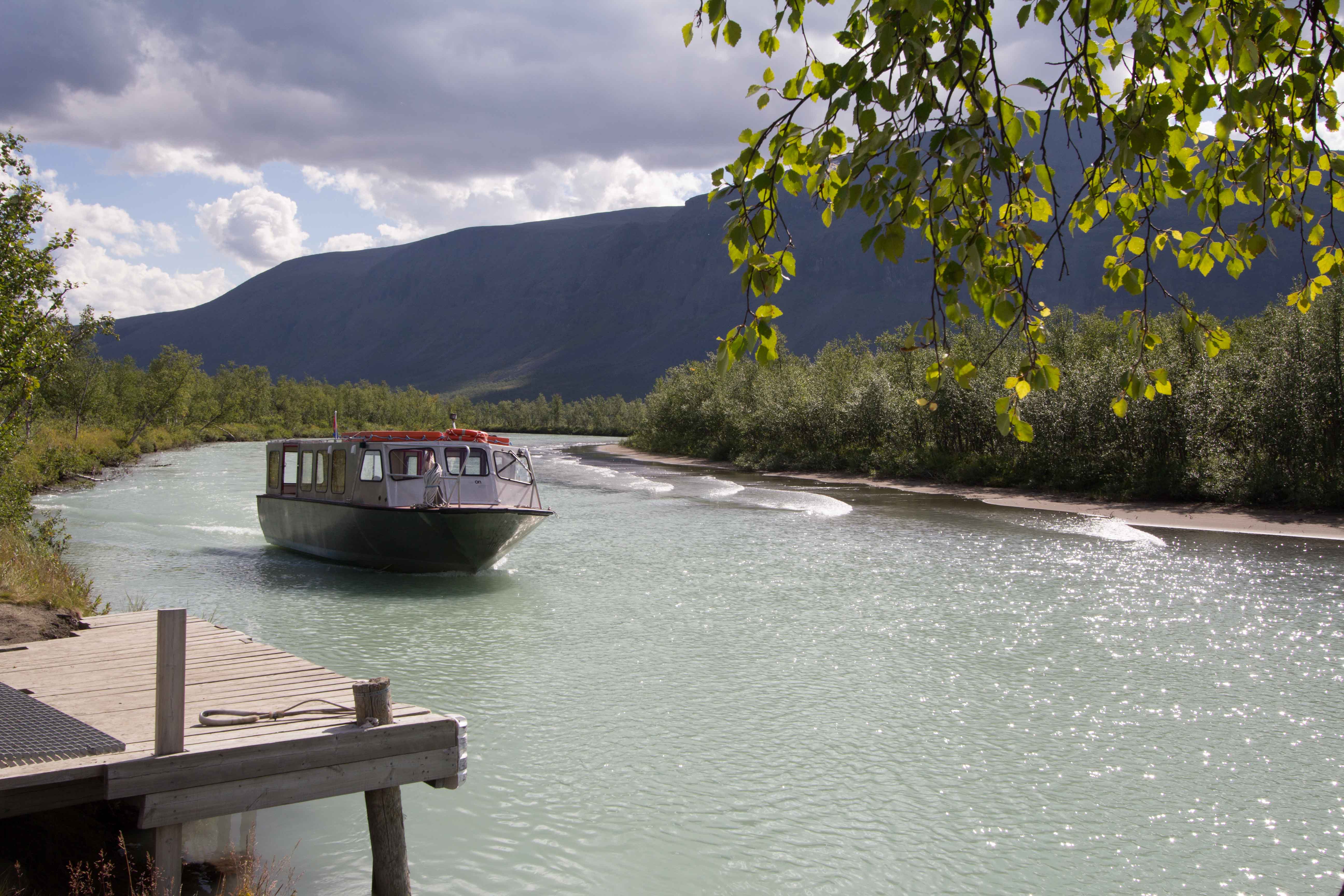 Nästa dag var det bara att i strålande sol gå tillbaka mot Nikkaloukta, precis som på vägen upp till Kebnekaise tog vi båt en knapp tredjedel av vandringen. Vid nedre båtbryggan åt vi dessutom renburgare på ”Lap Dånalds” 🙂 Åskmolnen hängde runt omkring oss sista biten in mot Nikkaloukta men solen fortsatte att lysa på oss och regnskurarna drog vidare någon annanstans.