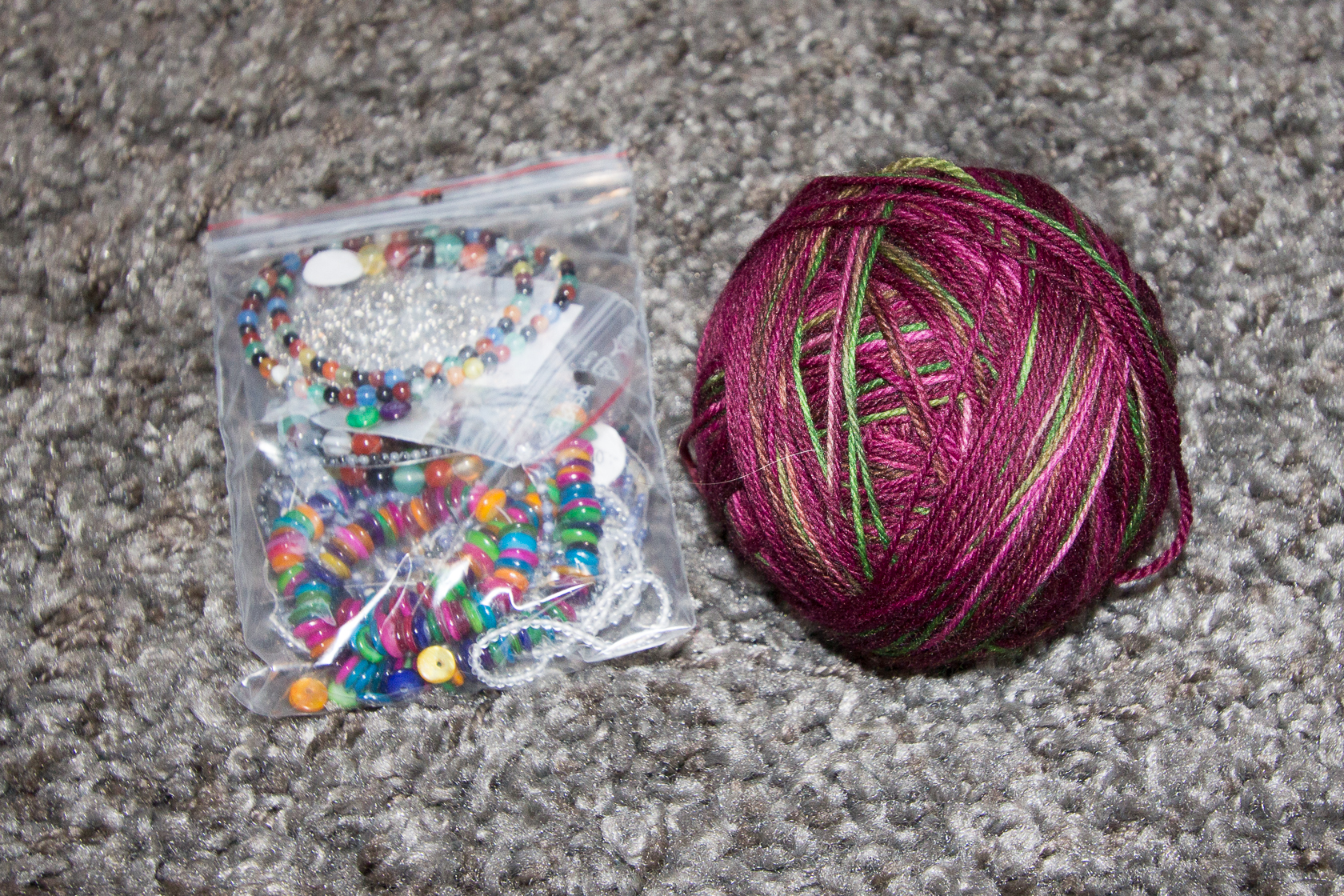 Ägnar dagen åt att bland annat sticka sockor, som jag upptäckte var väldigt färgmatchat med senaste halsbandet jag fixat: