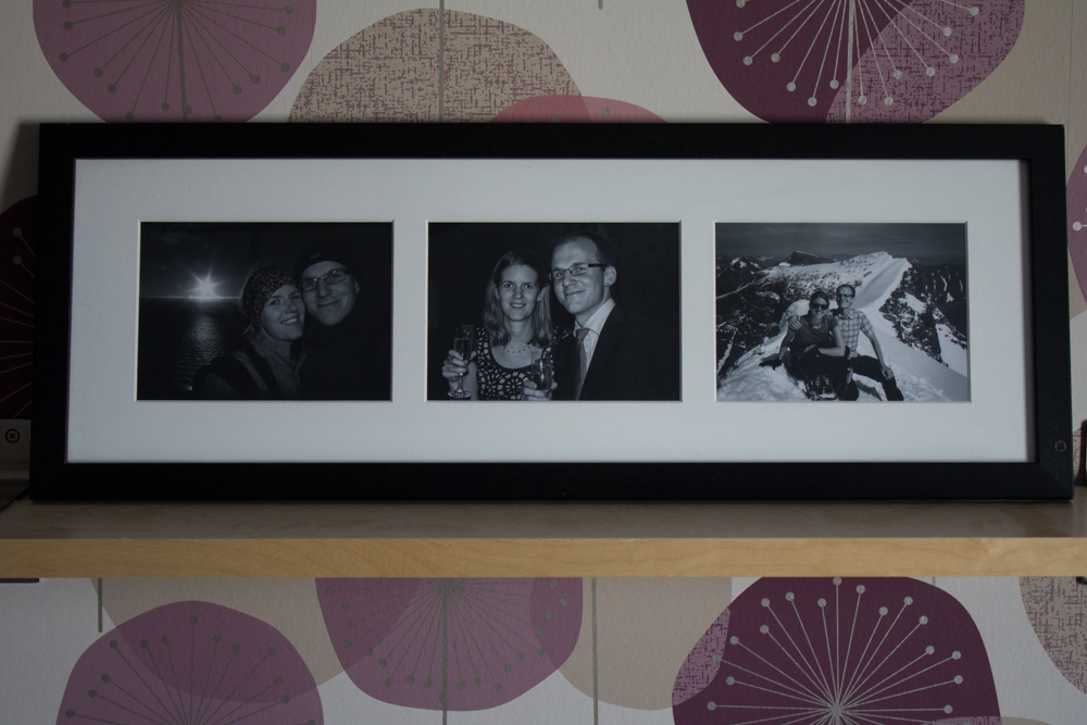 Jag har också satt in lite fina bilder på mig och Patrik i en ram som stod oanvänd inne i förrådet, midnattssol på Nordkap, bröllopsmiddag och högst upp på Kebnekaise 🙂