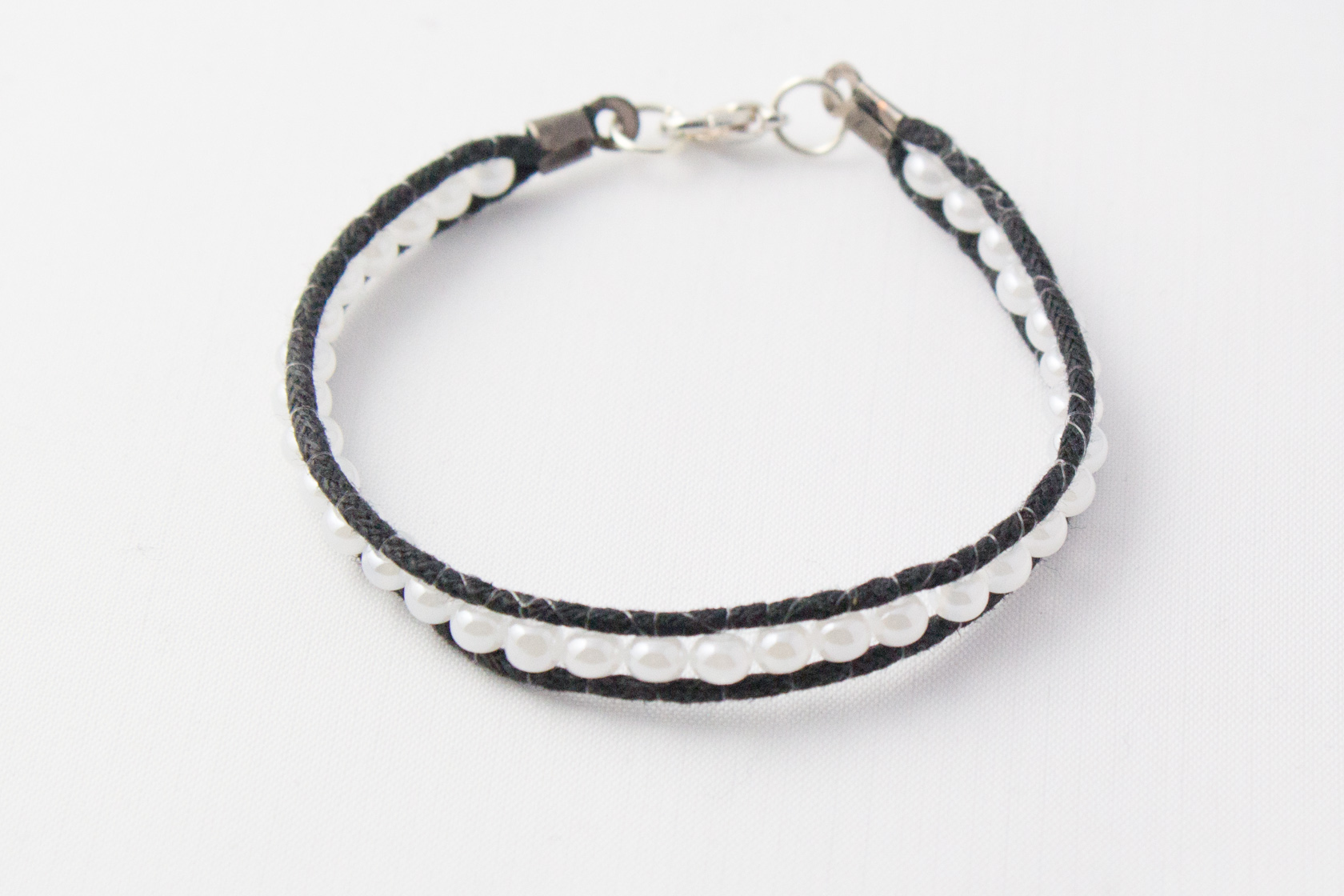 2. Trä på 4 pärlor och trä igenom första pärlan så att nu finns 2 ringar