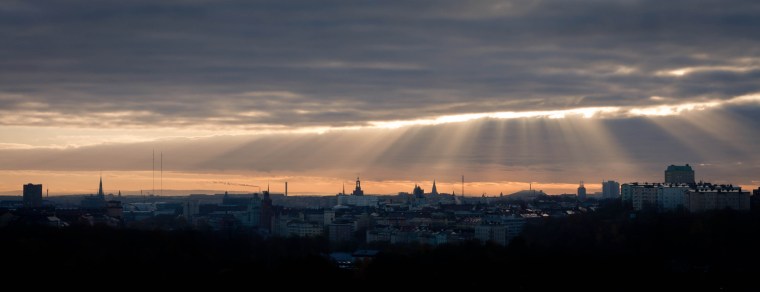 För att fortsätta med foto så kommer här en snygg bild över Stockholm tagen från vår balkong i början av november: