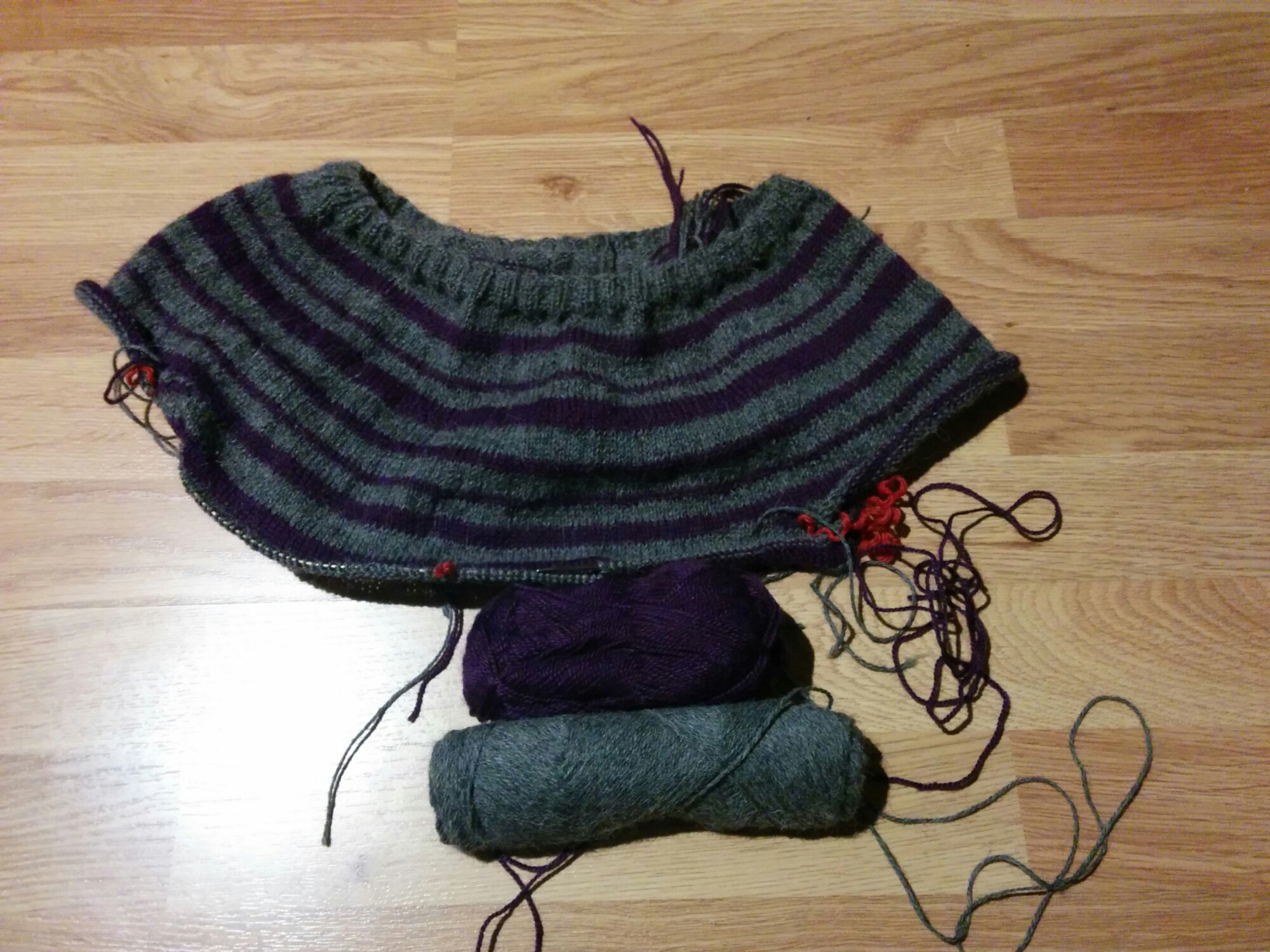 Jag är snart också klar med handledsvärmarna jag stickar på. Jag blev efter att ha stickat ungefär 1,75 st tvungen att åka till garnaffären och köpa mer garn, som tur var fanns garntypen fortfarande kvar så nu kan handledsvärmarna bli klara snart (Om jag bara slutar att göra fel så att jag slipper repa upp).