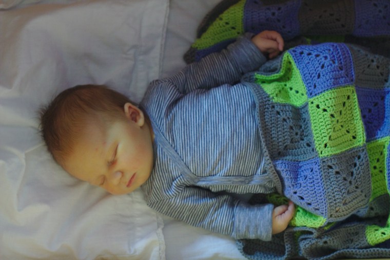 Jag har också virkat en filt till barnvagnen/sängen