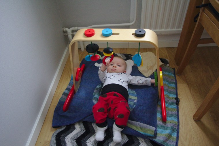 Byxorna används flitigt av Alma som denna vecka lärt sig att greppa och få tag på saker 🙂