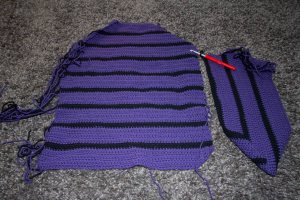 Till Skottland tog jag med mig garn och virknål (nåt ska man ju göra på Ryanair-planet…). Jag har nu kommit en bra bit (mellan 1/5-del och 1/4-del) på min virkade filt jag kom på att jag skulle göra. Det går relativt snabbt framåt, är sjukt enkelt och blir riktigt bra. Mycket bra att pyssla med i soffan eller på balkongen!