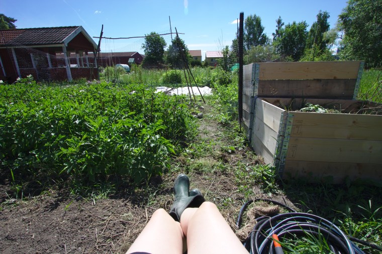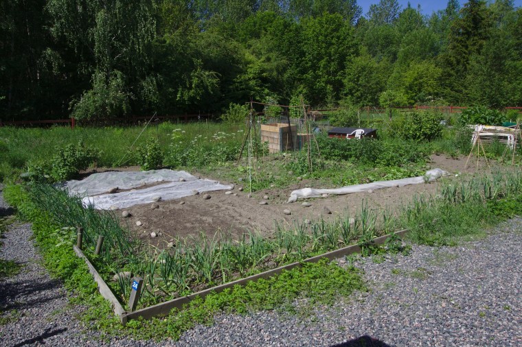 Här händer det inte så mycket, eller i livet händer det som vanligt massor men det blir inte längre nedskrivet och publicerat här.  Jag har senaste månaden ägnat mig åt att vara på kort-semester uppe i Höga Kusten, sy kjolar, linne och en klänning, vara på 90-års firande i Borås, rensa ogräs och så en massa saker på lotten, sy en bovete-madrass till spjälsäng(kanske kommer ett eget inlägg om det), säga hej då till jobbet för ganska lång tid framöver, fira midsommar och spana in hur bygget av husen vi ska flytta till november går.